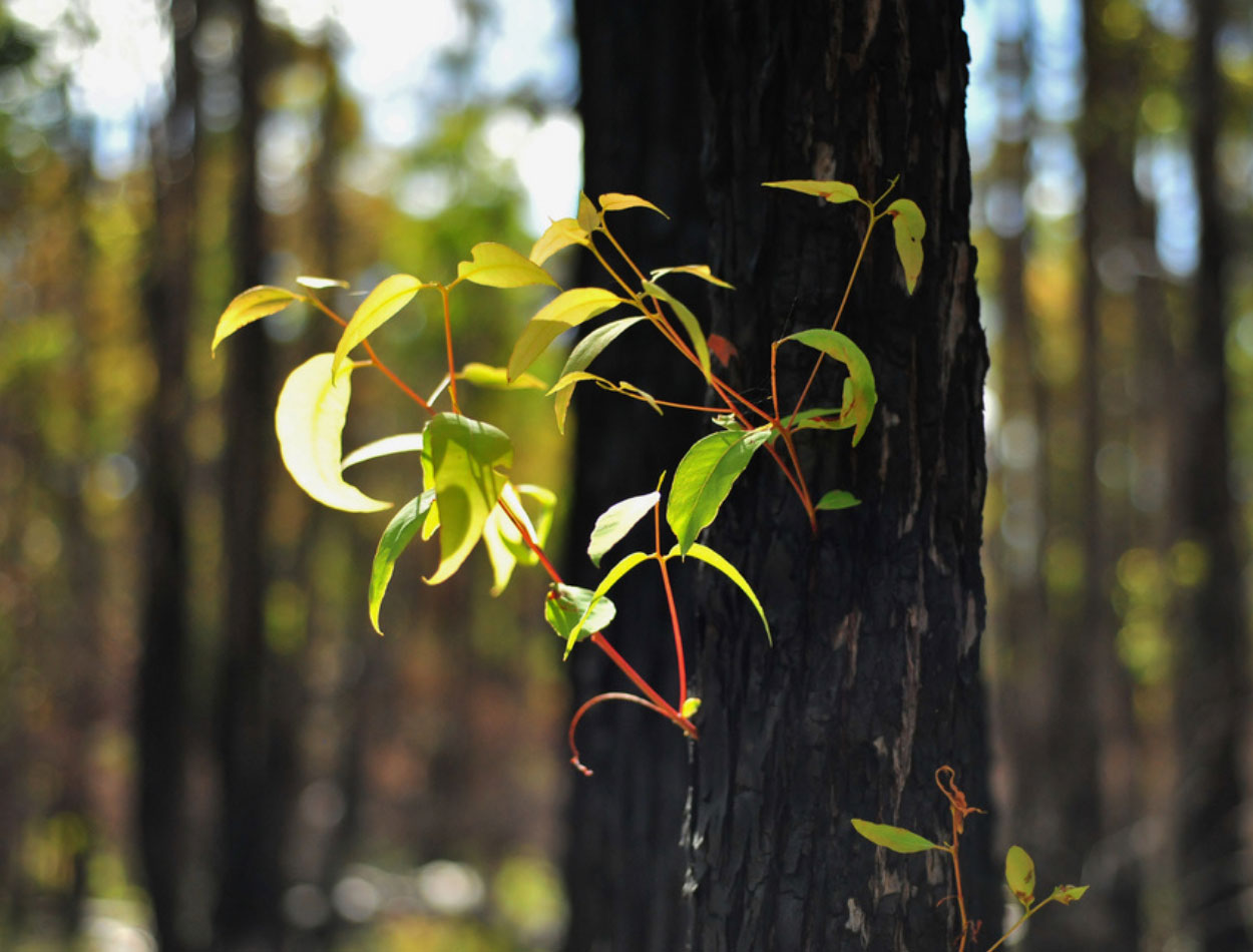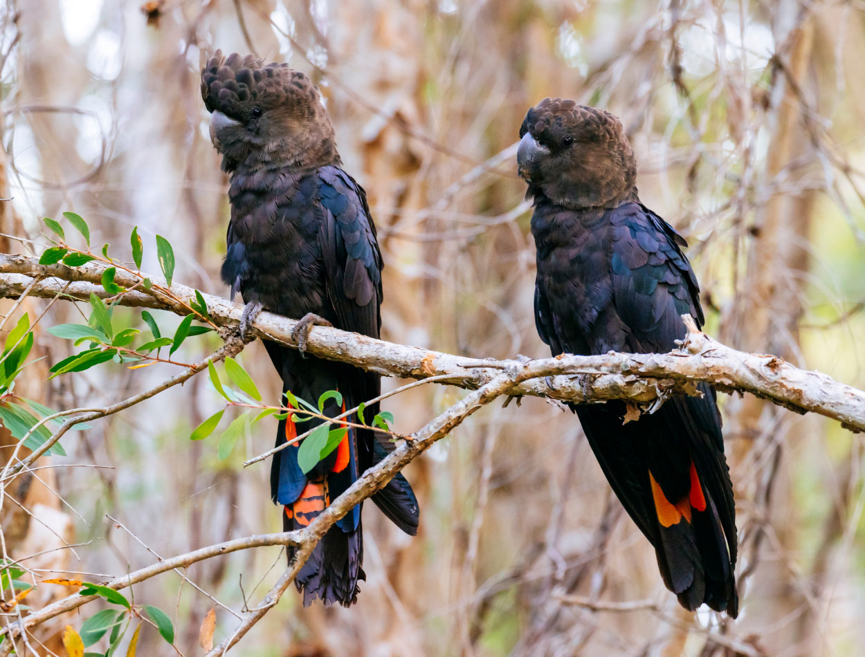 Together, these species form a biodiverse and thriving forest ecosystem, supporting everything from tiny wildflowers and fungi to possums, bandicoots and native bird species like red tailed black cockatoos and fairy wrens.