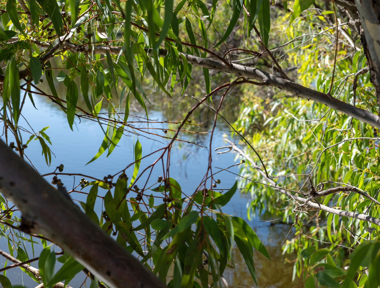 Marri trees known for its vibrant red gum loved by cockatoos, Blue Gums tall and aromatic, with striking silvery blue leaves and Blackbutt trees a lesser known local native, perfect for supporting native birdlife.